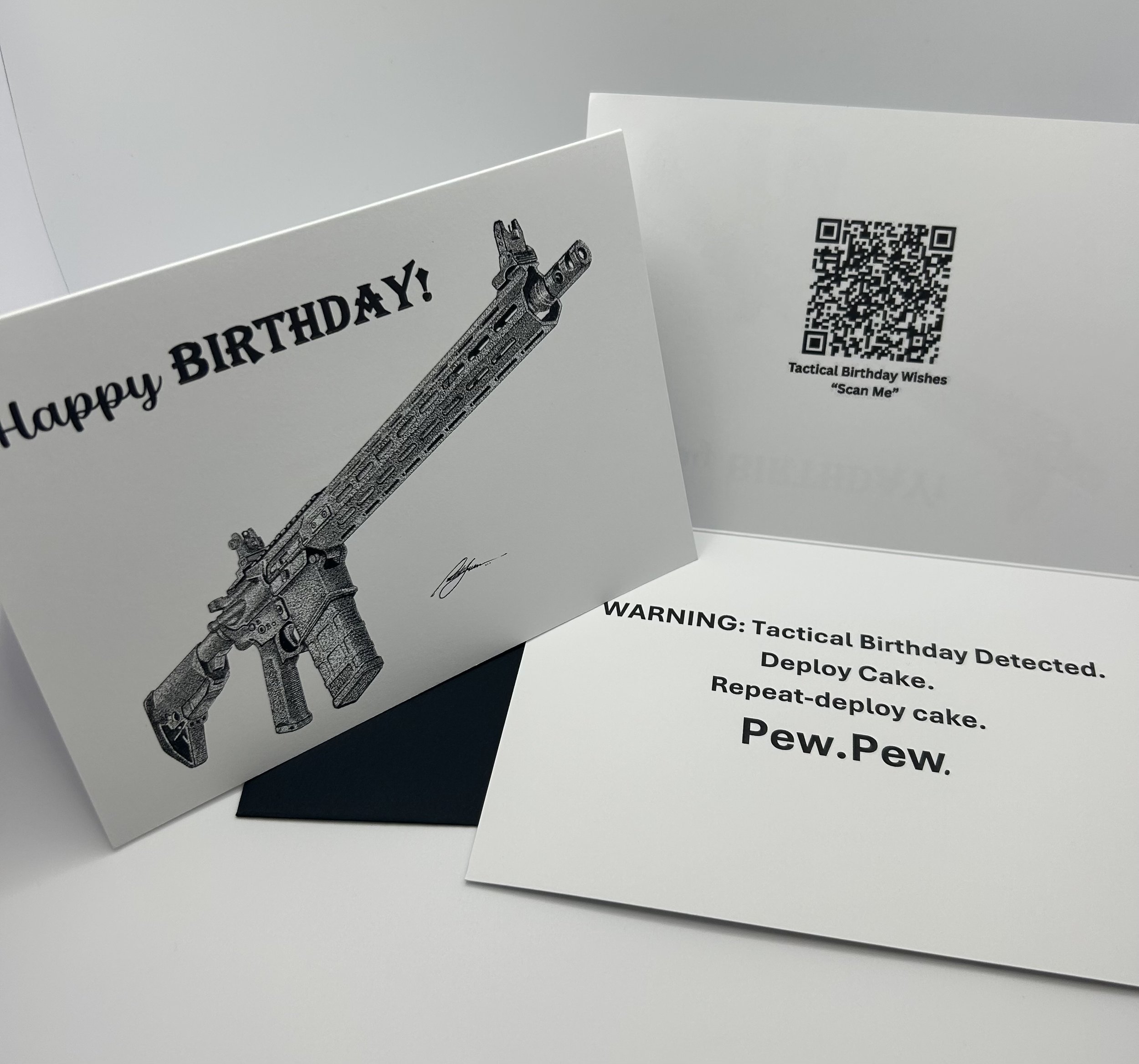 Tactical greeting cards are made for firearm fans, hunters, veterans, and patriotic Americans who appreciate creativity, humor, and bold expression through art and technology.